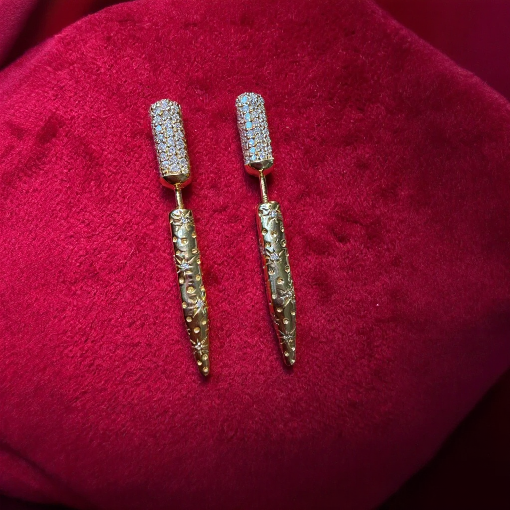Nujoum Pin Earrings - Gold with Diamonds